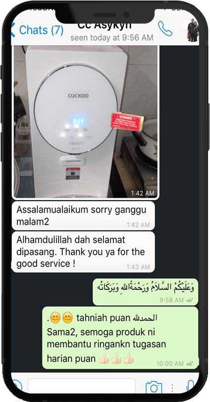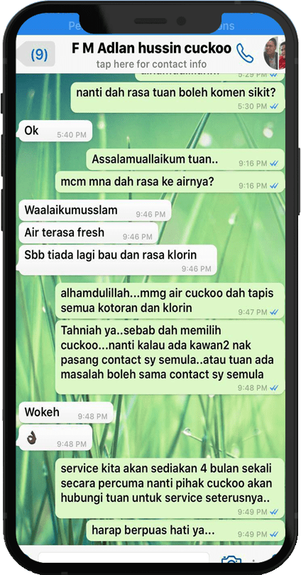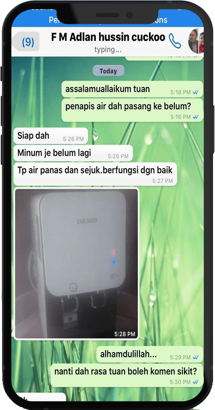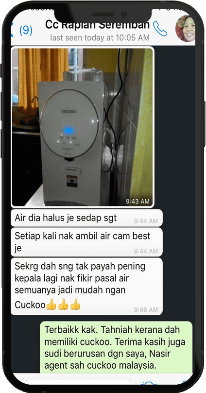 Hi! Terima Kasih Visit Website Saya! Saya Nazry Sejak Tahun 2020 Sebagai Agent CUCKOO / Sales Representative CUCKOO! Anda Nak Info Produk CUCKOO Tekan Button Whatsapp!